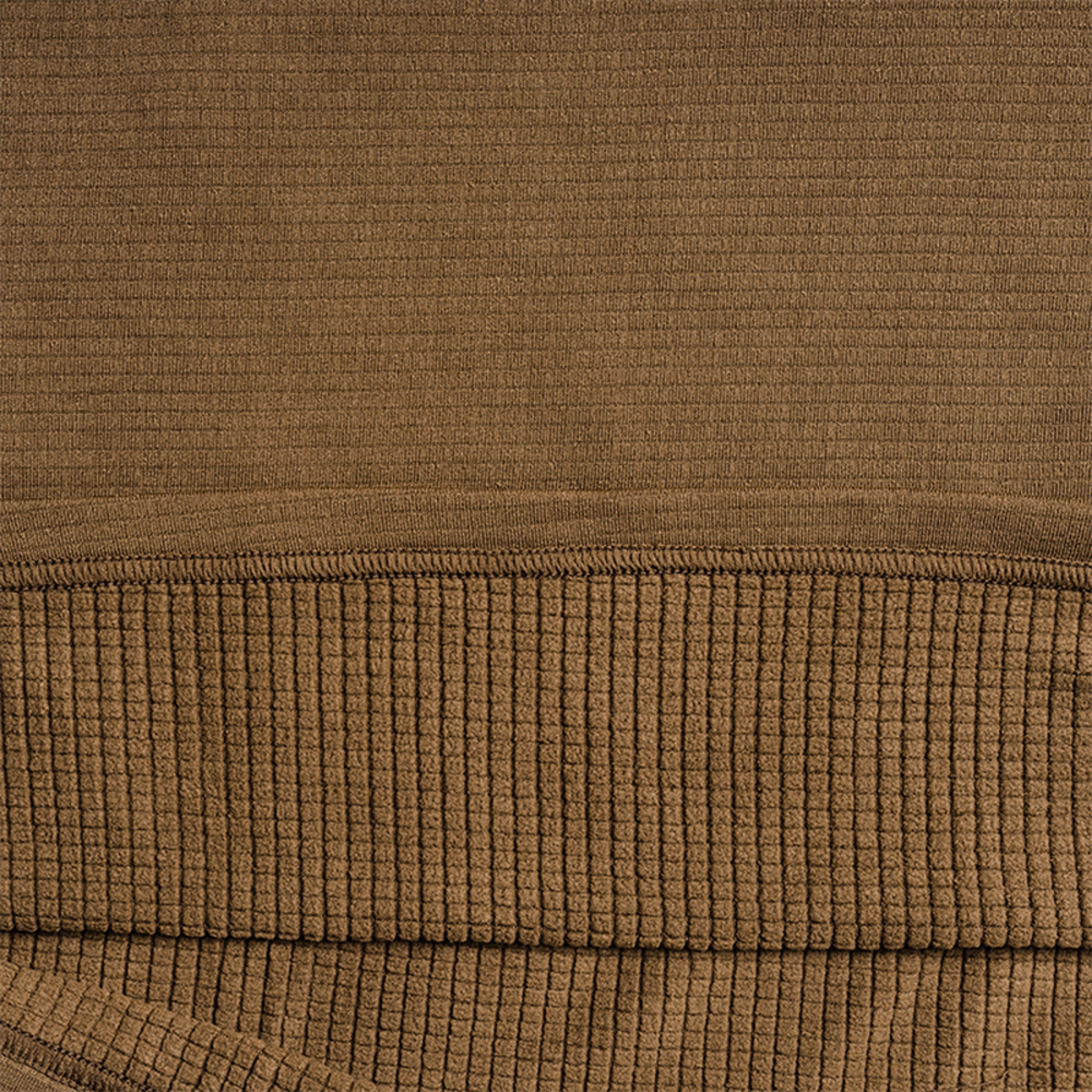Le col montant et l’ouverture zippée facilitent l’ajustement thermique. La coupe proche du corps travaille avec les autres équipements, s’intègre sous un plate carrier, reste compatible avec un holster et préserve l’accès aux pouch. Conçue pour un environnement froid et sec, cette pièce n’est pas imperméable et se porte idéalement en seconde couche sous une barrière externe lorsque la météo se dégrade.