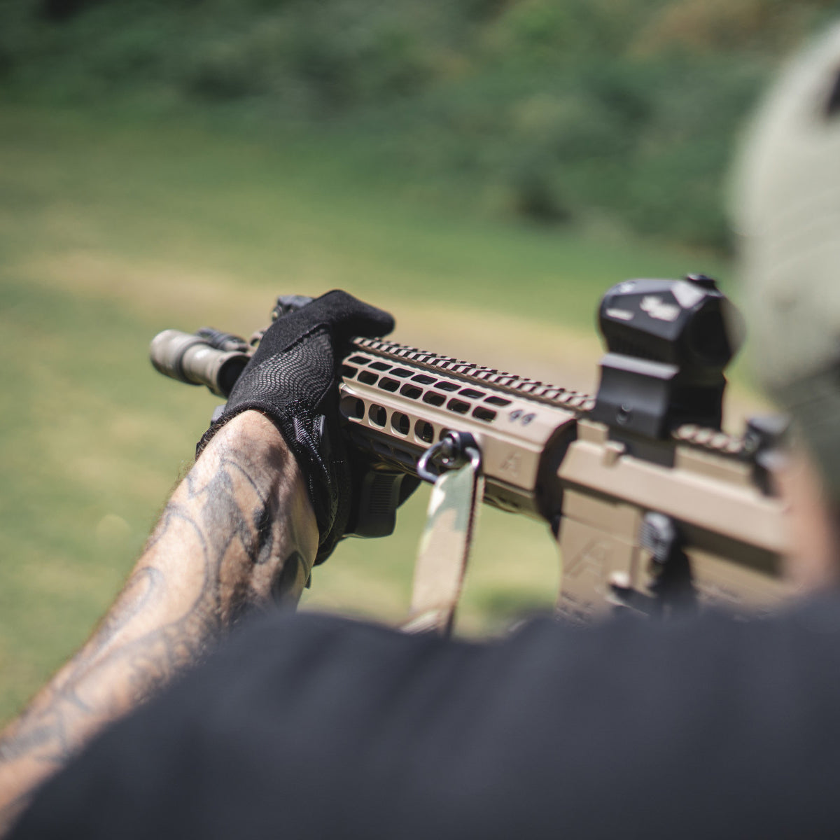 Adapté aux exigences de la norme EN 388, ce gant privilégie l’efficacité grâce à une construction mêlant TPE, Nylon et Cuir AX-Suede™. Les coutures soignées au doigt d’action garantissent une longévité régulière, et les boucles en nylon facilitent l’emport sur équipement, holster ou pouch via points d’ancrage. Non destiné à l’immersion, il reste lavable en machine pour un entretien simple après patrouille.