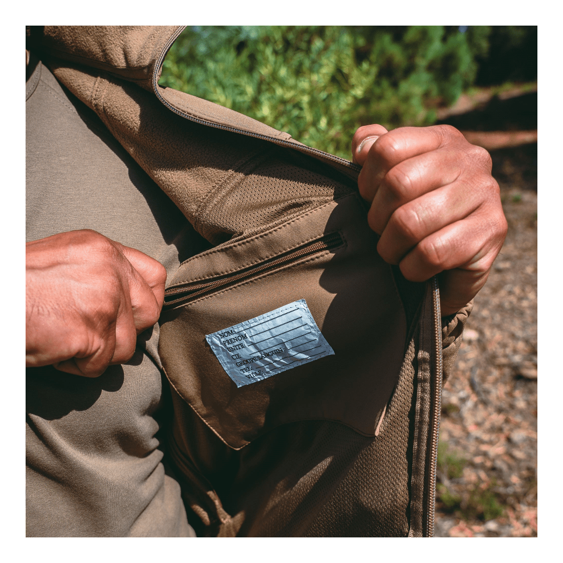 La membrane affiche une colonne d’eau de 8000 mm et garantit une imperméabilité durable sous la pluie. La capuche intégrée renforce la sécurité et la continuité de la couverture. La coupe étudiée stabilise l’équipement et facilite les gestes, du holster à la pouch fixée sur un plate carrier via MOLLE, pour une efficacité constante.