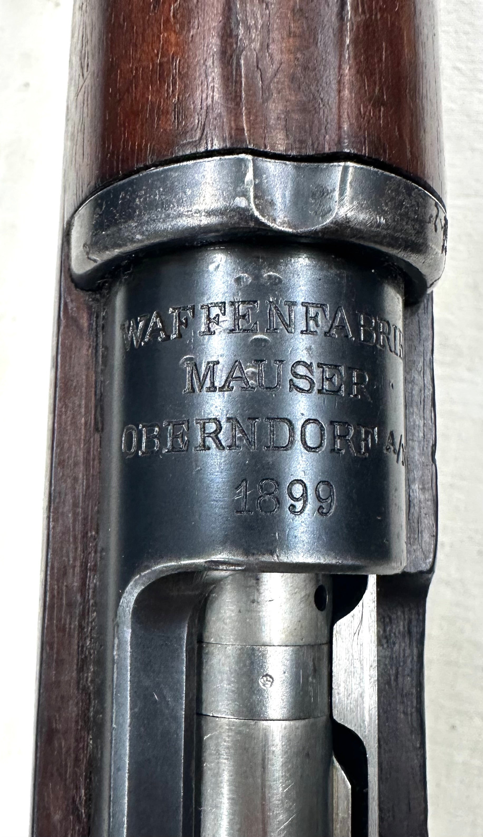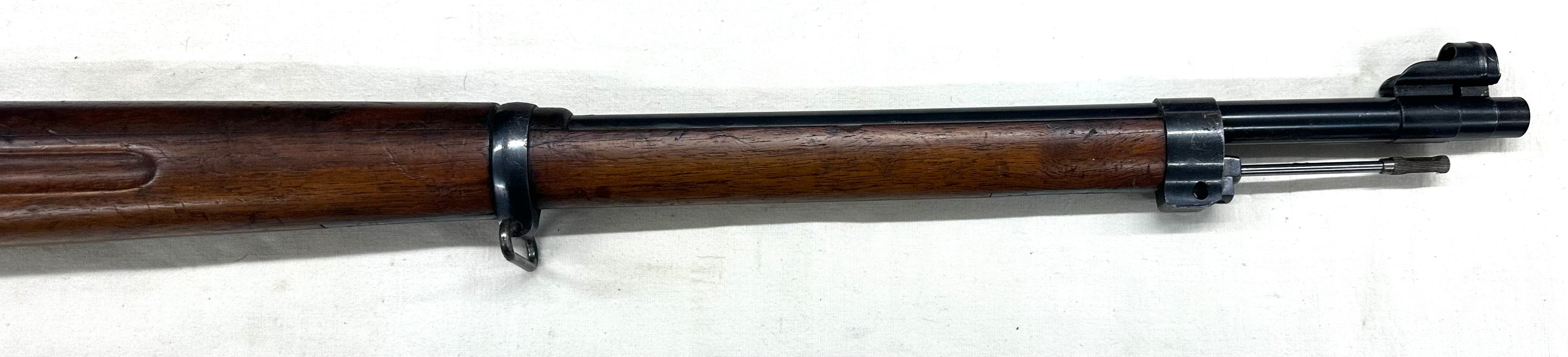 Magnifique Mauser M96 suédois, chambré en calibre d’origine 6.5x55, fabrication Mauser de 1899, en parfait état, superbe crosse pratiquement sans marques d’utilisation, très beau bronzage à 95%, possède son protège-guidon et sa baguette d’origine. Monomatricule, canon bien brillant avec de belles rayures. Idéal pour le TAR ou la collection. Arme éprouvée (poinçons d’épreuve allemands).