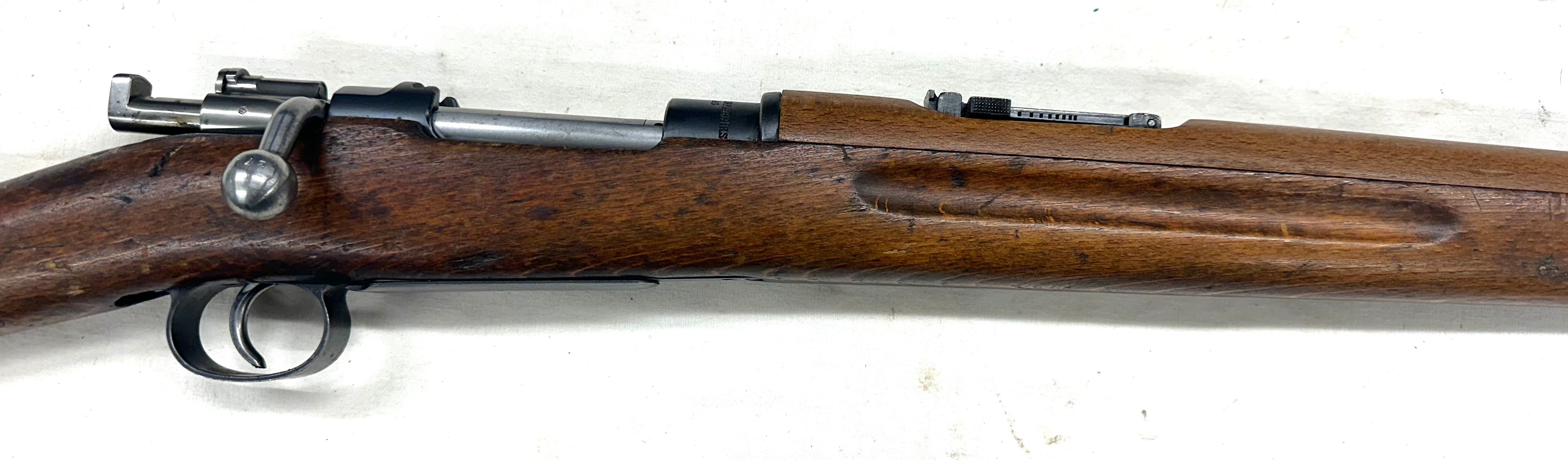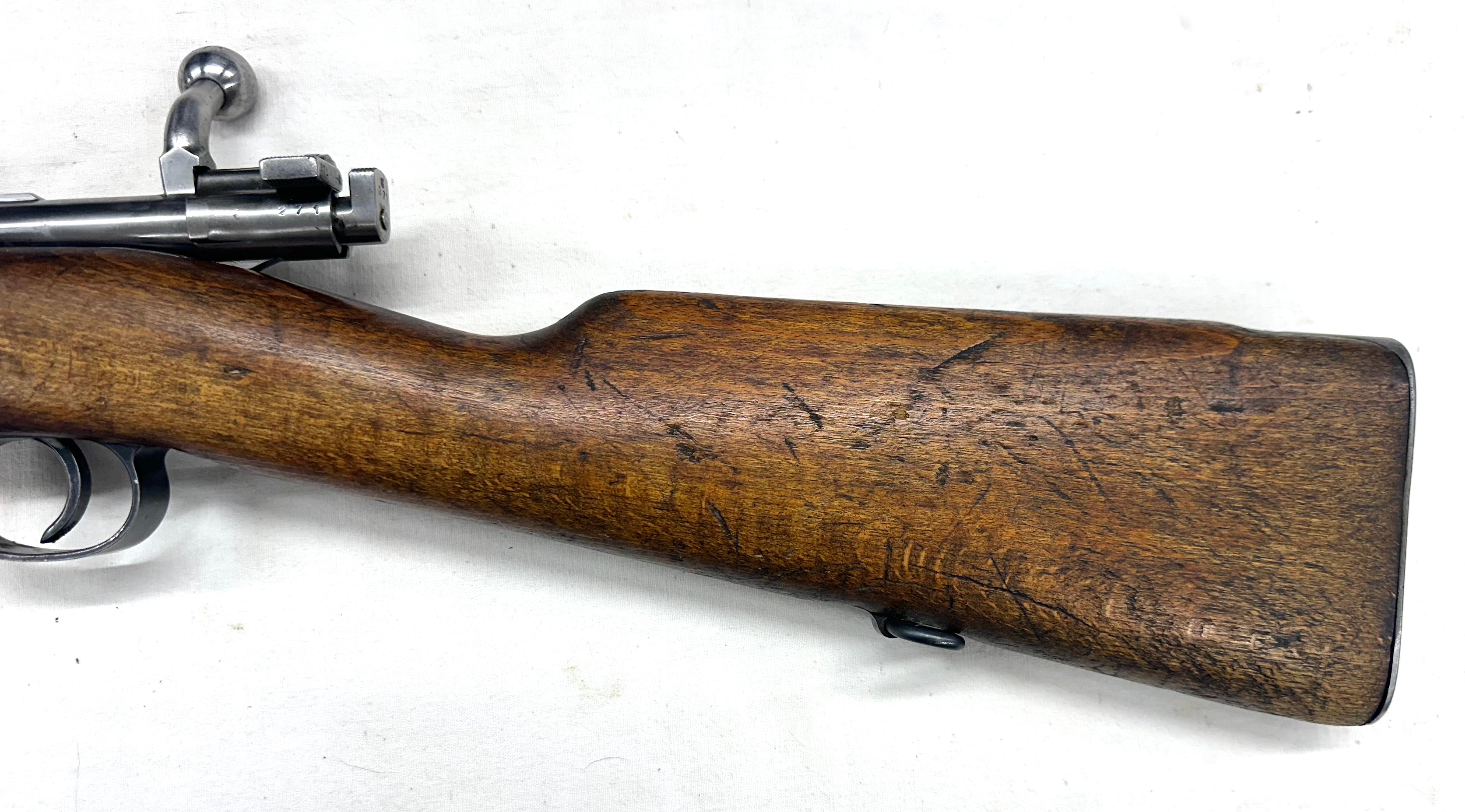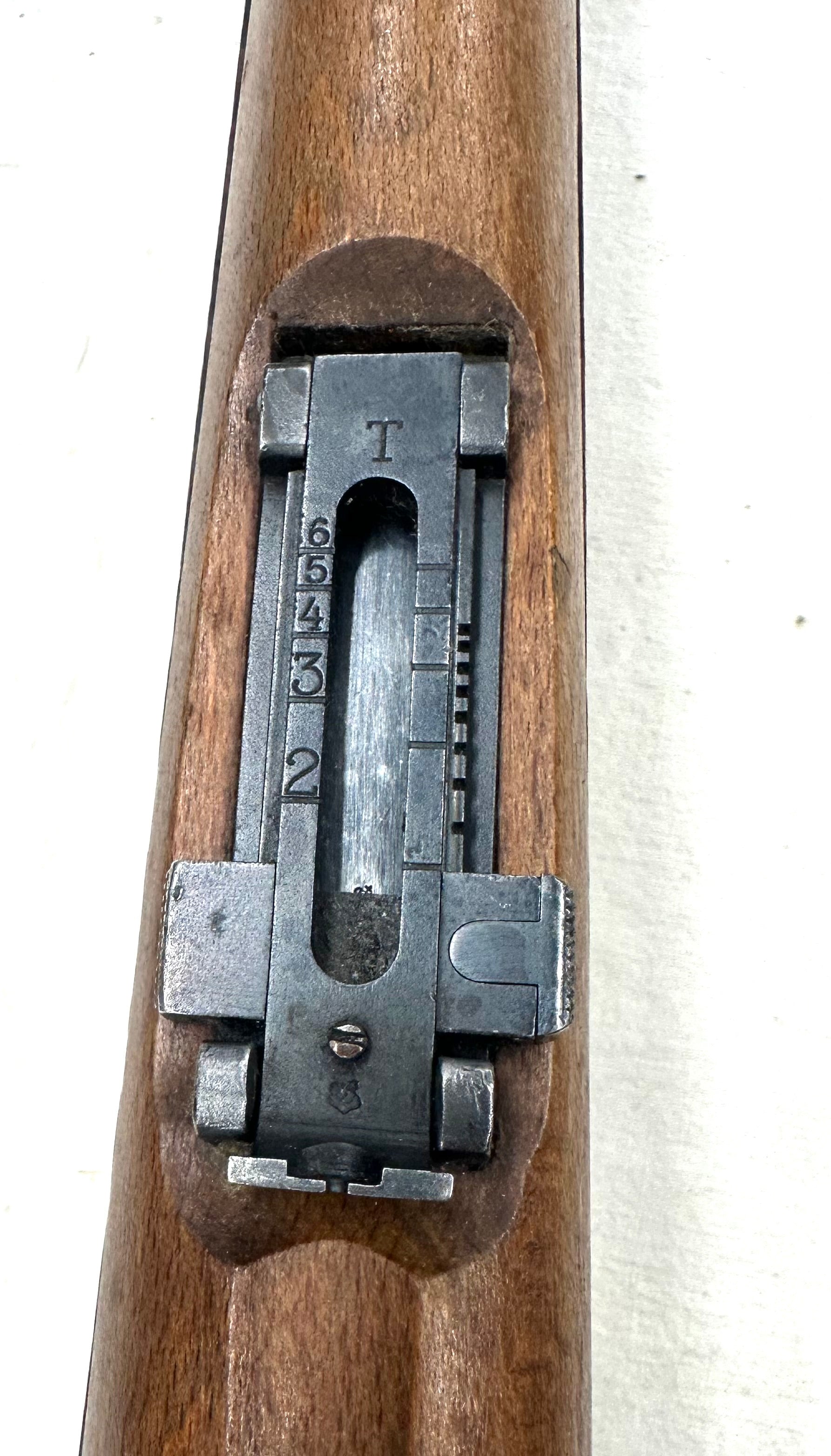 Très beau fusil Mauser M38 suédois, chambré en calibre d’origine 6.5x55, fabrication Husqvarna 1943, avec levier coudé, en très bon état état, crosse avec traces de manipulation, très beau bronzage à 80-90%, baguette absente. Monomatricule, canon bien brillant avec de belles rayures. Une belle arme moins courante pour le TAR ou la collection. Arme éprouvée (poinçons d’épreuve allemands).
