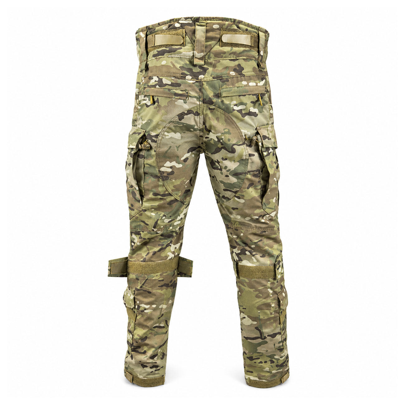 La coupe est ajustée sans être moulante, dimensionnée pour porter un ceinturon de combat, un sous-ceinturon et un système porte-plaques par-dessus. La ceinture rembourrée, désormais doublée d'un tissu intérieur doux, élimine les points de pression sous charge prolongée. Deux ajusteurs auto-agrippants élastiqués à l'arrière permettent un réglage fin du tour de taille. Le pantalon taille selon les standards US (W28, W30, W32…) sans surprise. Disponible en plusieurs tailles : se référer au sélecteur de taille sur la fiche pour vérifier la disponibilité.